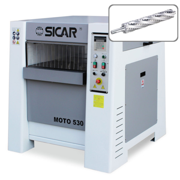 Tloušťkovací frézka SICAR MOTO 530S slouží k rovinnému úběru materiálu na požadovanou výšku. Hoblovací jednotka je umístěna z horní strany a dílec je posouván po pracovním stole pomocí podávacích válečků. Tloušťkovací frézka se používá obrobení masivního dřeva na požadovanou tloušťku s perfektně rovným povrchem. Bývá označována také jako protahovačka nebo tloušťkovačka.