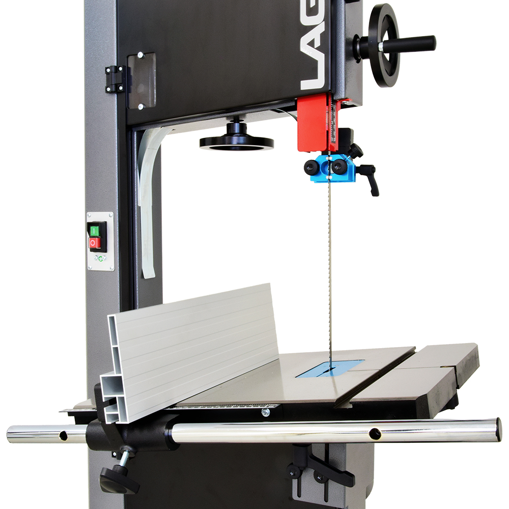 Pila je vybavena odolnými keramickými vodítky pilového pásu nad a pod stolem, které poskytují velmi přesné vedení. Tato vodítka zaručují ideální kvalitu řezu a prodlužují životnost pilového pásu. Průhledy v horní části stroje vám umožní kontrolovat napnutí nebo uvolnění pásu za chodu. Praktickým prvkem je také páka na zadní straně pily pro rychlé uvolnění pásu. Pila IGM Laguna 1412 se odlišuje proti konkurenci především promyšlenou konstrukcí, která umožňuje extra vysoký řez až 305 mm.