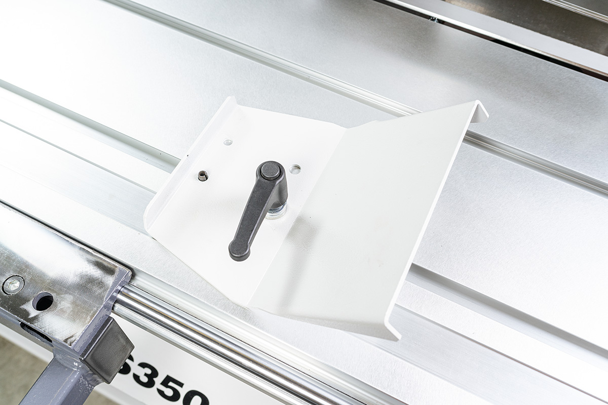 Paralelní pravítko s šíří řezu 1500 mm (na pravé straně od pilového kotouče) |