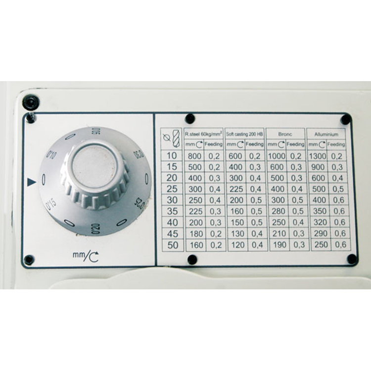 Masivní převodová sloupová vrtačka s elektromagnetickým spínáním posuvu pinoly, závitovacím cyklem a chlazením. Určená pro nejnáročnější použití.